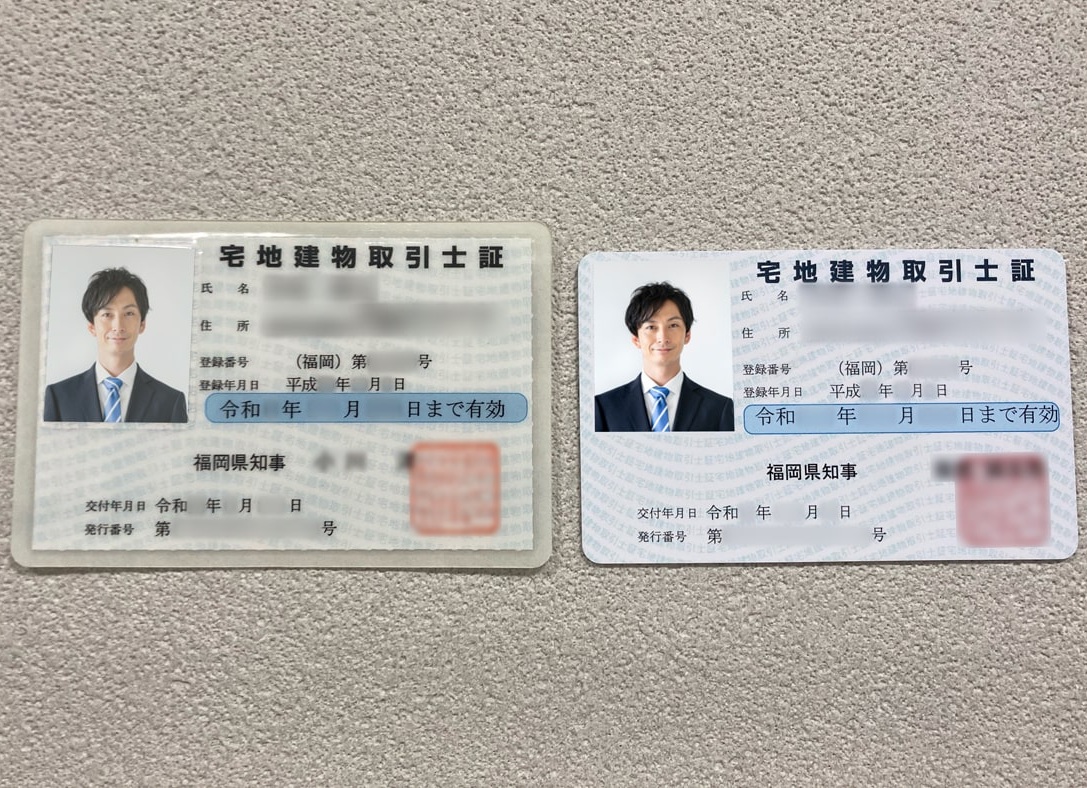 合格証書は普段持ち歩けませんが、宅建士証なら財布に入れて持ち運べ、本人確認書類にもなり得る場合があります。都道府県ごとに順次、写真右側のクレカサイズのプラスチック製カードに切り替わっています。
